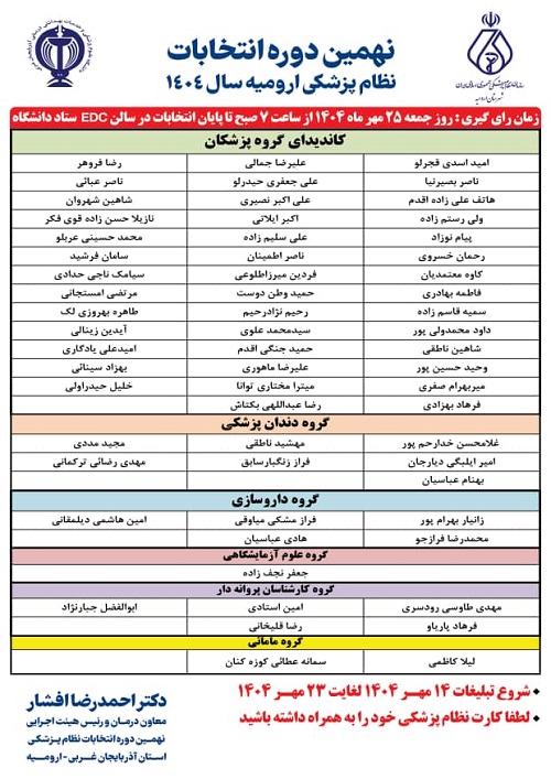 نهمین دوره انتخابات نظام پزشکی ارومیه سال1404 :