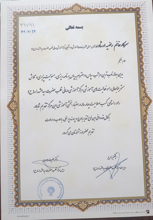 کسب صلاحیت چهارساله در اعتباربخشی آموزشی 1404/08/04 - 10:32 - تعداد بازدید: 17 - تعداد بازدیدکننده: 17 - کد خبر : 21511 - گروه خبری : آخرین اخبار - تعداد نظرات : 0 روز پنجشنبه 2 آبانماه سالجاری از خانم ارشاد کارشناس مسئول خدمات آموزشی و دانشجویی مرکز آموزشی درمانی قلب حضرت سیدالشهداء(ع) جهت کسب صلاحیت چهارساله در اعتباربخشی آموزشی تقدیر و تجلیل بعمل آمد.